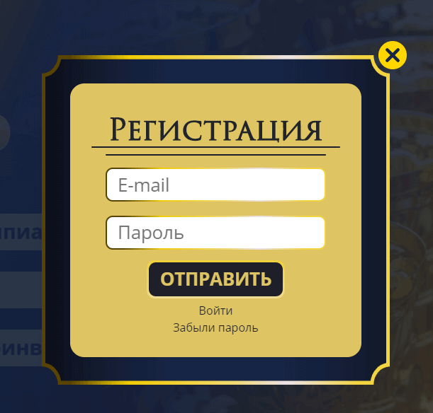 В открывшемся окне «Регистрация» заполните пустые строки. Впишите e-mail Участника и пароль.